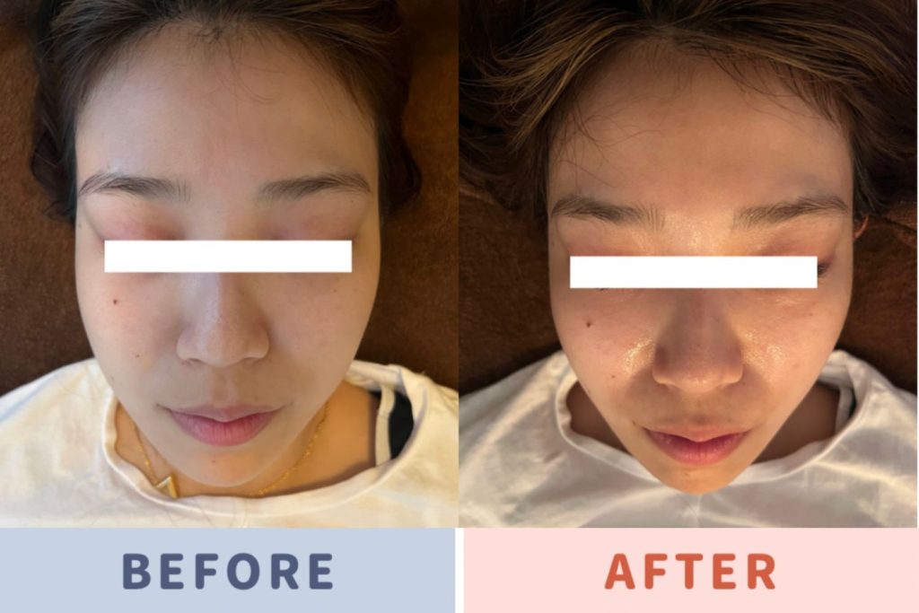 頭筋、表情筋を効率よく緩める施術方法のため、リラックスして施術を受けていながらも、お帰りの際にはリフトアップ、トーンアップ効果を即効実感していただけます。