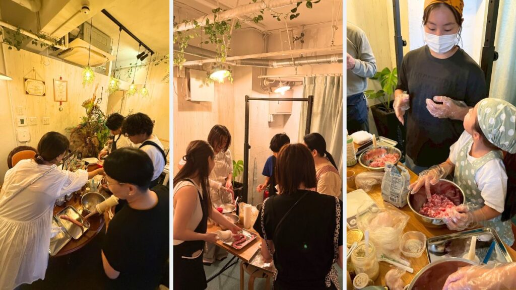 「お肉を詰めるってこんなに難しいんだ!」と驚くお子さまや、親子で協力して丁寧に仕上げる姿がとても印象的でした。